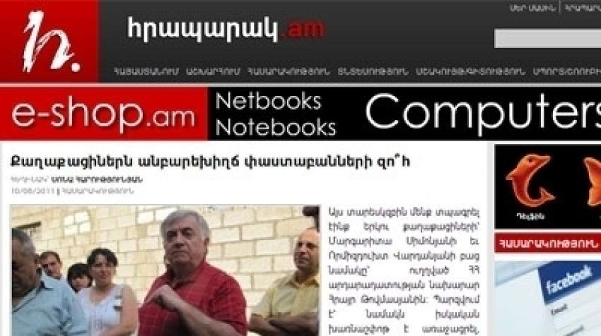 The "Hraparak" newspaper represented the court comments written under the articles of the newspaper web-site which insulted the editor and the newspaper but they were not removed from the web-site.