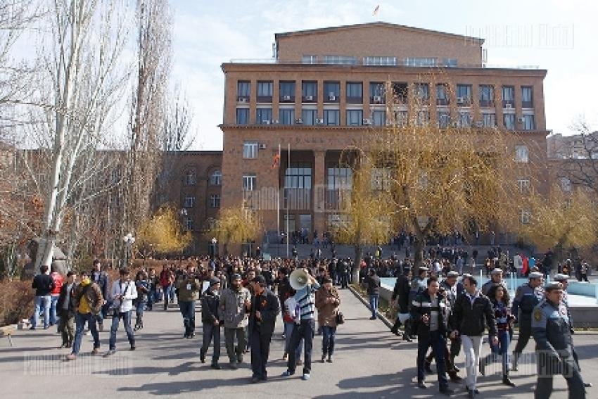 place in front of the Yerevan State University main building.
