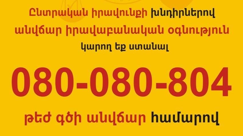Ընտրությունների ընթացքում առաջացող բոլոր խնդիրների, ինչպես նաեւ նկատելի խախտումների դեպքում խնդրում ենք զանգահարել թեժ գիծ՝ անվճար իրավական խորհրդատվության համար։ Անհրաժեշտության դեպքում Արագ արձագանքման խումբը օգնություն կտրամադրի տեղում։