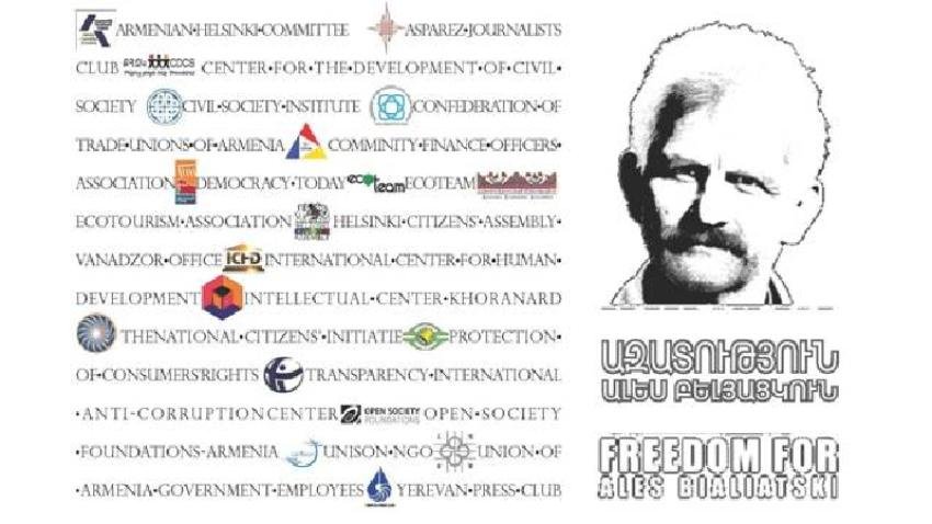 Հայաստանյան իրավապաշտպան կազմակերպությունները միացել են  միջազգային գործընկերների պահանջին. ազատ արձակել Բելառուսում գործունեություն ծավալող իրավապաշտպան Ալես Բելյացկուն: