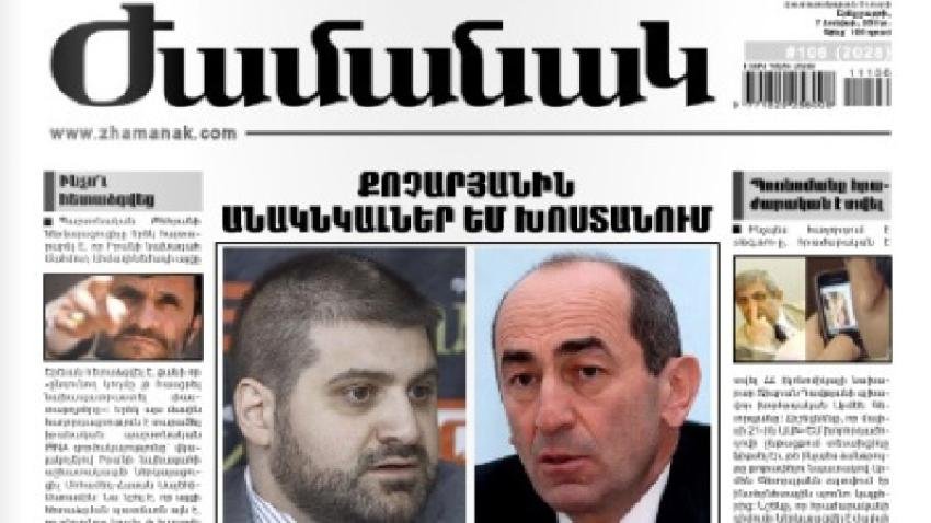 Հիշեցնենք, որ ՀՀ երկրորդ նախագահ Ռոբերտ Քոչարյանի ընտանիքի անդամները դատական հայց են ներկայացրել «Ժամանակ» օրաթերթում 2010թ. սեպտեմբերին տպագրված 3 հրապարակումների համար և պահանջում են հերքել իրենց պատիվն ու արժանապատվությունը արատավորող տեղեկությունները և վնասի փոխհատուցման և փաստաբանական ծառայության համար վճարել 6 միլիոն դրամ: