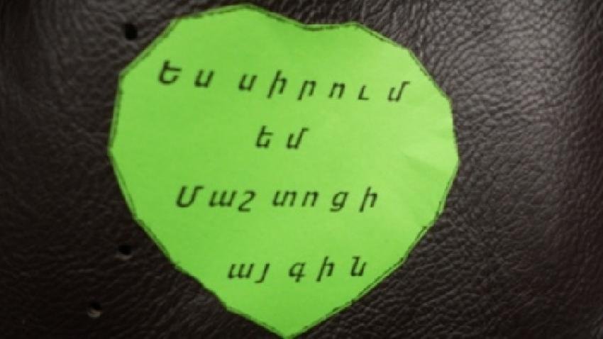 Ակցիայի մասնակիցների պայուսակներին փակցված էր այս երկտողը