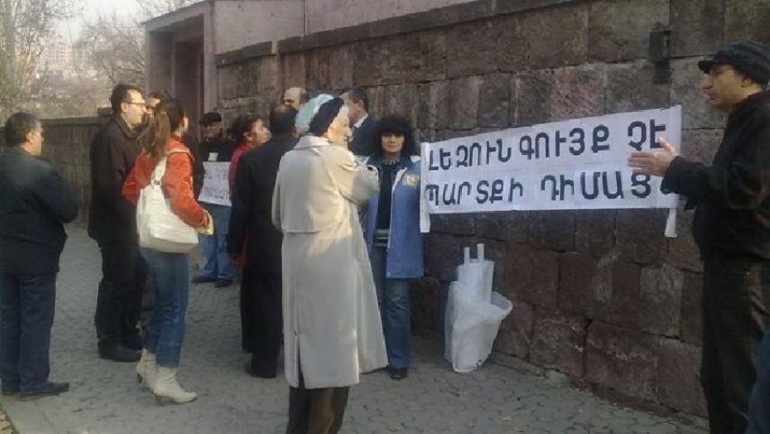 Դեկտեմբերի 8-ին Ազգային ժողովում «Լեզվի մասին» և «Հանրակրթության մասին» օրենքներում փոփոխությունների նախագծի քննարկման կապակցությամբ, որի ընդունմամբ հնարավորություն կստեղծվի Հայաստանում օտարալեզու դպրոցներ բացել, «Մենք դեմ ենք օտարալեզու դպրոցների վերաբացմանը» նախաձեռնությունը բողոքի ակցիա էր կազմակերպել Ազգային ժողովի առջև: